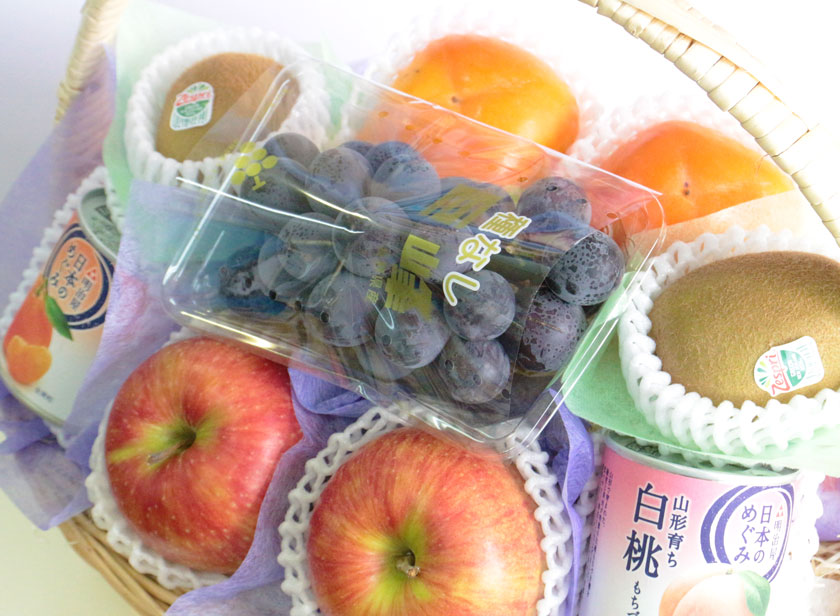 内容 | 長野産 巨峰 1パック 長野産 南水梨 2個 長野産 シナノスイートりんご 2個 和歌山産 柿 2個 ニュージーランド産 キウイ 2個 オーストラリア産 オレンジ 2個 明治屋 日本のめぐみ フルーツ缶詰 2個 (入荷状況により産地が変わる可能性がございます) (時期によってフルーツの品種が変わる可能性がございます。(例)グレープフルーツ→他の品種の柑橘) |