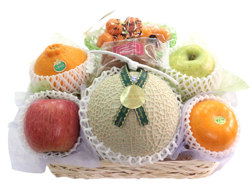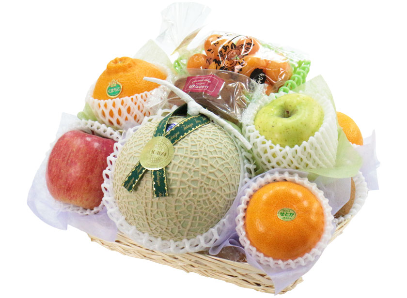 | 内容 | 高知ほか産 マスクメロン 1個 佐賀ほか産 せとか 1個 熊本ほか産 デコポン 1個 愛媛産 いよかん 1個 鹿児島産 金柑 1パック アメリカ産 メロゴールド 1個 オーストラリア産 オレンジ 1個 青森産 王林 1個 和歌山ほか産 キウイ 1個 高井屋 パウンドケーキ チーズ、レーズン、オレンジのうち1個 (入荷状況により産地が変わる可能性がございます。) (時期によってフルーツの品種が変わる可能性がございます。(例)せとか→他の品種の柑橘) |