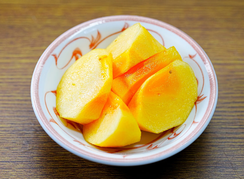 保存方法 | 柿はヘタの部分で呼吸し、ここから水分が蒸発していきます。 水で濡らしたティッシュやキッチンペーパーをヘタに当て、ラップで包んでからポリ袋に入れ、ヘタを下になるように冷蔵庫の野菜室で保存すると長持ちします。 |